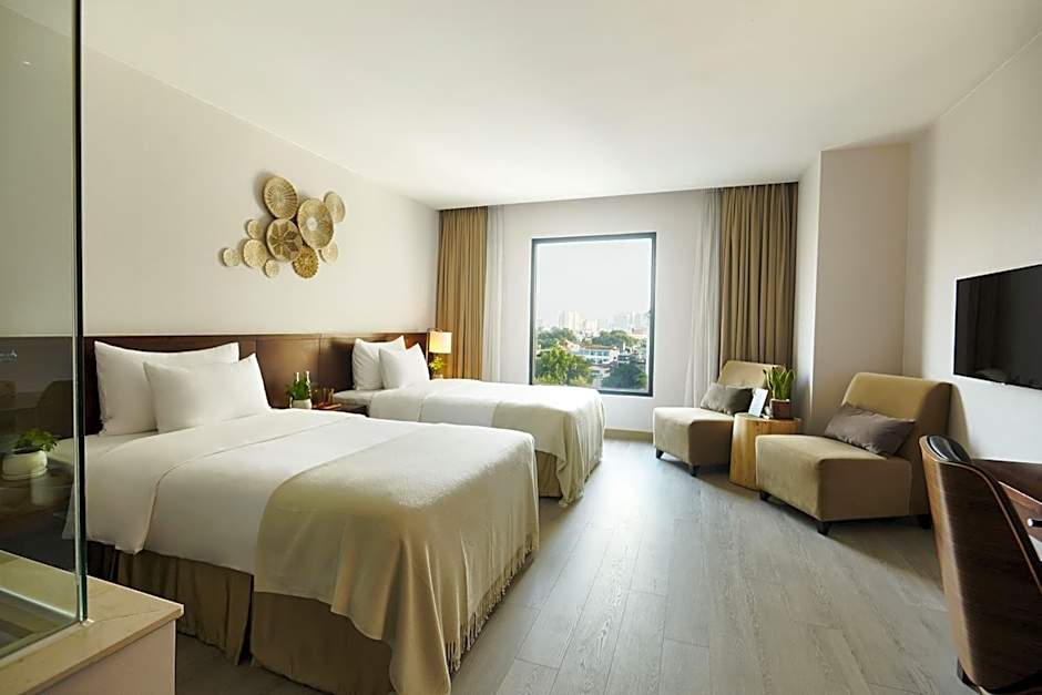 +1 (888) 385-8465ยินดีต้อนรับสู่ The Ann Hanoi Hotel & Spa ที่พักหรูระดับสี่ดาว ห่างเพียง 1.2ไมล์ จากใจกลางฮานอยที่มีชีวิตชีวา! ตั้งอยู่ที่ 38A Hang Chuoi โรงแรมแห่งนี้ผสมผสานความสง่างามร่วมสมัยกับเสน่ห์ท้องถิ่นอย่างลงตัว ให้คุณผ่อนคลายหลังจากวันหนึ่งที่ได้สำรวจวัฒนธรรมอันหลากหลายของเวียดนาม โดยมีราคาห้องเริ่มต้นเพียง $55 ทำให้คุณสามารถพักอย่างหรูหราโดยไม่ต้องใช้งบมาก